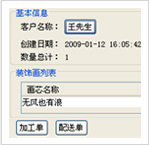 在您的电脑里有您自己装入的各种画芯、框条、卡纸等资料,您还可以选择导入各种国内外品牌的画芯、框条、卡纸(您不必事先花钱押货)。这样在您这台小小的电脑里有可能装载着数以万计的各种画芯、框条、卡纸等资源,可以组合成万亿种装饰画效果,每一幅画芯随时都可以展示给客户,相当于您一下子拥有了一座万余平米的成品展示大厅!